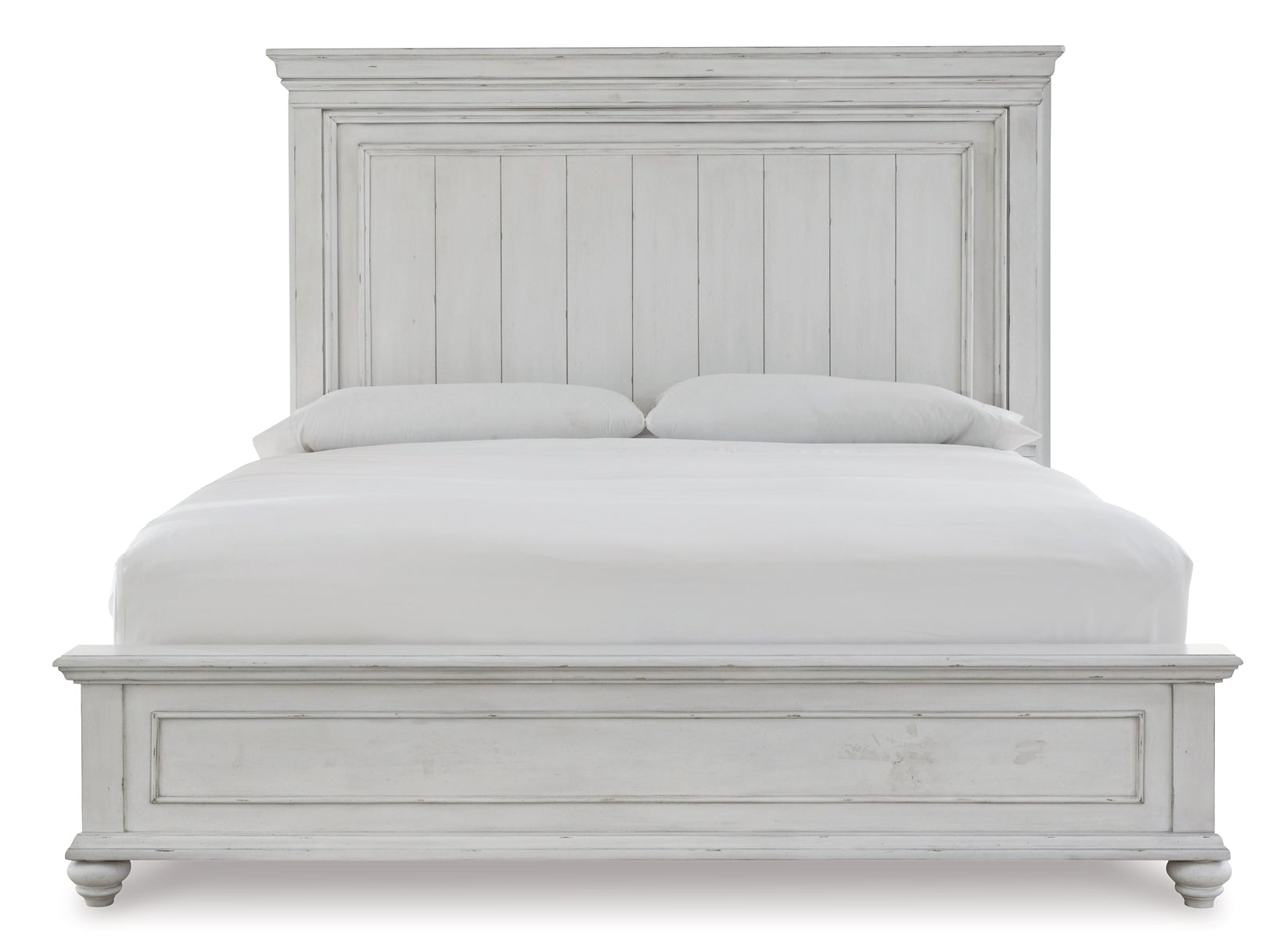 Includes queen panel headboard, footboard and rails, Made with solid wood, veneers and engineered wood, Distressed whitewash finish, Foundation/box spring required, sold separately, Mattress available, sold separately, Assembly required |