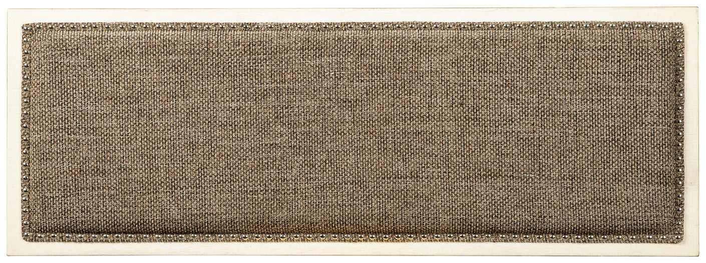 Made of veneers, wood and engineered wood, Antiqued white finish, Heavy woven fabric upholstered seat with nailhead trim, Assembly required |