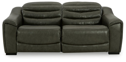 For those seeking to curate a living room retreat that offers superior comfort and a contemporary aesthetic, this sleekly designed power reclining sectional will become your favorite source of at-home serenity. Rest on expertly matched leather and faux leather upholstery, and use the one-touch power control to recline and adjust the headrests with ease. As you recharge after a long day, your devices can too with USB charging. This sectional is visually enticing in a luxe dark gray, with slope track arms and stitched detailing on the back to enhance its modern appeal.