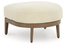 Elevate the appeal of easy-breezy living with this outdoor ottoman. Made to look like wood yet durable enough to weather the elements, it's sure to serve you and your besties well, year after year. The gentle curve of the frame is echoed in the cushion, which is covered in Nuvella+™ high-performance fabric. Talk about plush refinement.