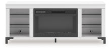 Level up your gaming experience and make movie nights to remember. This TV stand with electric fireplace extends your entertainment beyond the screen. Its built-in fireplace brings the heat, synchronizing with LED backlighting on the shelves. And you can customize the vibe with three trendy color options: blue, white and red. Modern function. Captivating, cool style. With this TV stand, revamp your home’s recreational hub like never before.