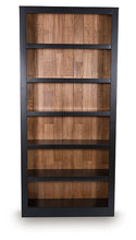 Raise the bar on modern farmhouse style with this home office bookcase. Its casual good looks are accentuated with a two-tone finish, which pairs a warm satin black with a butcher block veneer back in a contrasting rich brown wood tone. Six shelves—four of which are adjustable to fit your needs—are perfect for storage and displaying decor, bringing both form and function to your office.