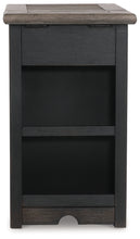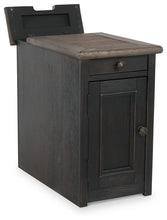 Shabby chic with a hint of down-home country, this chairside end table is all the talk of today’s design world. Wood grain shows through the weathered gray-brown top in all of its earthy pleasure. A pull-out tray with lovely traditional hardware has two cup holders. Fuel up your devices with the convenient charging station.