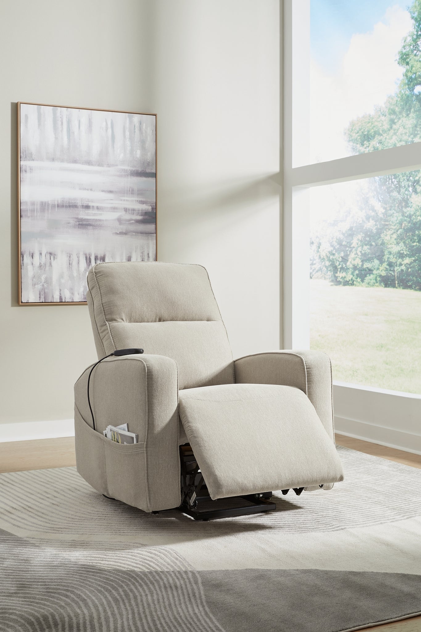 One-touch (hand control) power button with adjustable positions, Corner-blocked frame with metal reinforced seat, Attached cushions, High-quality foam cushions wrapped in poly fiber, Polyester upholstery, Next-Gen Nuvella is a performance fabric that is soft, easy to clean, stain-resistant and durable, Spot clean fabric with mild soap and water, let air dry; for stubborn stains, use a solution of 4 oz. bleach to 28 oz. water, Motor allows custom comfort positioning, Heat and massage elements feature auto shut-off after 30 minutes, Power cord included; UL Listed |
