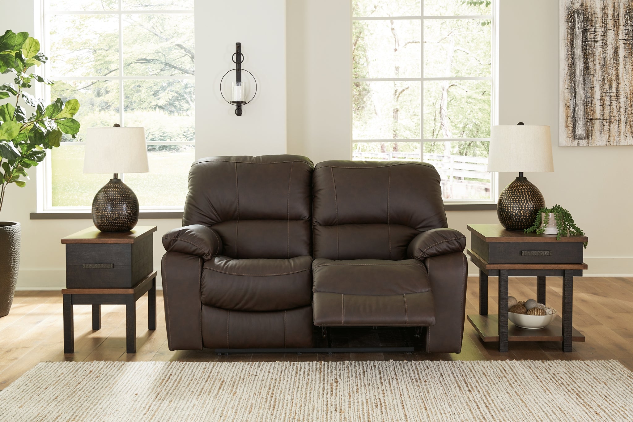 Focus on function. This practical power reclining loveseat balances contemporary character and irresistible comfort. Its affordable, expertly matched leather and faux leather upholstery keeps your style up to speed without breaking the bank. Reclining with the touch of a button, this piece plays well in relaxed, luxe seating areas made for quality time.