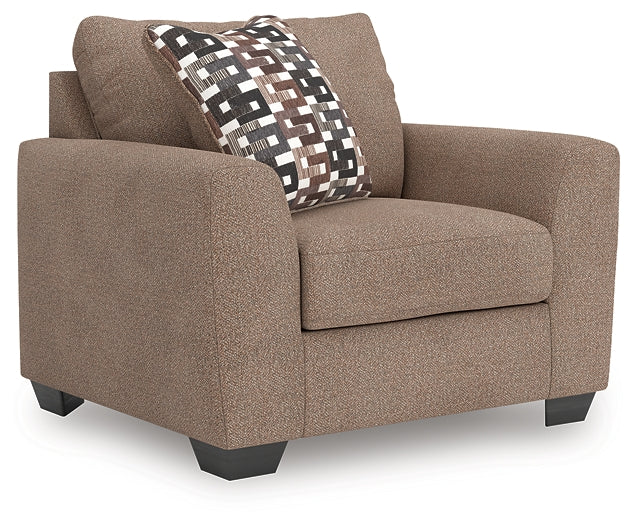 Corner-blocked frame, Attached back and loose seat cushions, High-quality foam cushions wrapped in poly fiber, Accent pillow included, Pillow with soft polyfill, Polyester upholstery, Exposed feet with faux wood finish, Platform foundation system resists sagging 3x better than spring system after 20,000 testing cycles by providing more even support, Smooth platform foundation maintains tight, wrinkle-free look without dips or sags that can occur over time with sinuous spring foundations |
