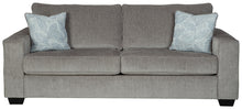 If style is the question, then this sofa is the answer. Sporting clean lines and sleek track arms, the decidedly contemporary profile is enhanced with plump cushioning and a chenille-feel upholstery that's so pleasing to the touch. Sure to play well with so many color schemes, this sofa in slate gray includes a pair of understated floral pattern pillows for fashionably fresh appeal.