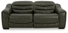 For those seeking to curate a living room retreat that offers superior comfort and a contemporary aesthetic, this sleekly designed power reclining loveseat will become your favorite source of at-home serenity. Rest on expertly matched leather and faux leather upholstery, and use the one-touch power control to recline and adjust the headrests with ease. As you recharge after a long day, your devices can too with USB charging. This loveseat is visually enticing in a luxe dark gray, with slope track arms and stitched detailing on the back to enhance its modern appeal.