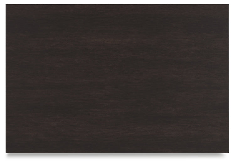 Made with hardwood solids, engineered wood veneer and MDF substrates, Dark brown finish, Metal bar pulls with bright nickel-tone finish, 2 smooth-gliding drawers with dovetail construction and metal center guides, Drawer interiors are lined with a wood grain laminate for a clean, finished look, Top moulding |