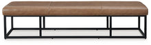 This accent bench takes a contemporary approach to everyday function. Showcasing a sleek combo of caramel leather upholstery and a black frame, it's a chic and convenient seating solution. Place this bench by the entryway, or at the foot of your bed, as a spot for slipping on shoes or resting bags and purses.