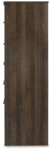 Made with engineered wood (MDF/particleboard/plywood) and decorative laminate for the right balance of affordability and durability, Vintage aged brown rough sawn finish over replicated oak grain, Pewter-tone hardware, 5 drawers, Safety is a top priority, clothing storage units are designed to meet the most current standard for stability, ASTM F 2057 (ASTM International), Drawers extend out to accommodate maximum access to drawer interior while maintaining safety, Assembly required |