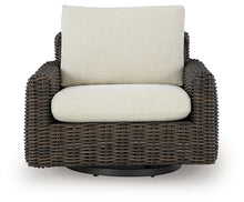 Add luxury, comfort and durability to alfresco fun. This outdoor swivel glider lounge chair captures the textural beauty of wicker while withstanding the elements, from rain to shine. With a UV-resistant design, the wonderfully low-maintenance Nuvella+™ fabric maintains its good looks over time. Deep, roomy seating completes the piece, offering ample space to sprawl out.