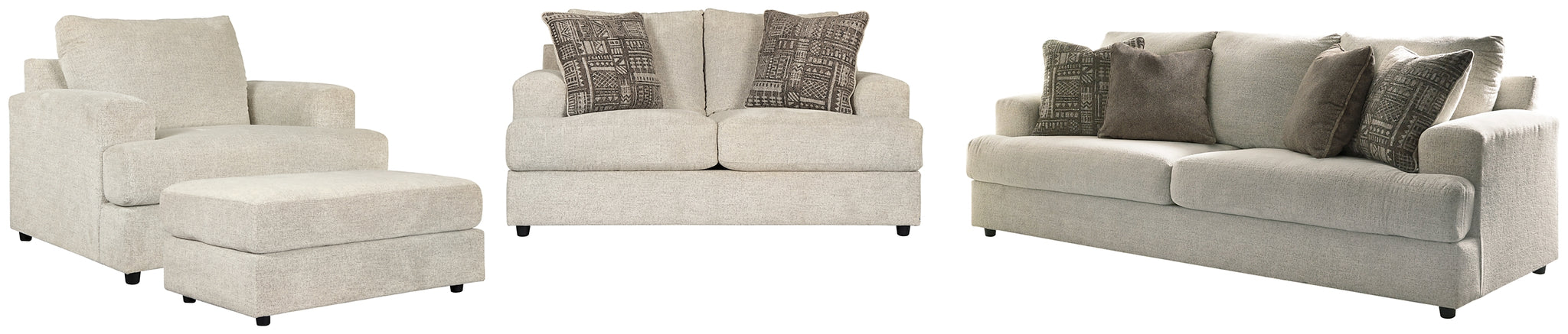 Flaunting a trendsetting silhouette, this living room set will transform your home with contemporary flair. Seating space is ample, giving you elongated plushness for deep relaxation. Chunky chenille fabric satisfies your need for an ensemble that feels as wonderful as it looks.