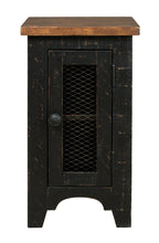 To those with an eye for the best in rustic farmhouse living, this two-tone chairside end table doubles up on charm. Designer touches include plank-effect styling, distress marks and a wire mesh door front for added character.